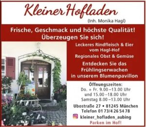 Von der Wagneru zur Landwirtschaft Monika Hagl betreibt den Hagl-Hof nun bereits in der 5. Generation in Aubing.Im Jahre 1854 zog ihr Ur-Ur-Großvater, der Wagnermeister Florian Hagl, als Erster nach Aubing, welcher nebenbei auch noch eine Landwirtschaft betrieb. Später kamen dann die Kartoffellieferungen zu den Pasinger Werken, sowie an Privathaushalte und umliegende Gastronomiebetriebe mit dazu.Inzwischen […]