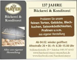 Im Jahre 1888 begann die traditionsreiche Geschichte der Bäckerei und Konditorei Mayer, indem die Bäckereimeisterin Anton Mayer und seine Frau Anna Müller heirateten. 1889 eröffneten sie den Laden in der Siedlerstraße. Ihr Sohn Anton Mayer übernahm 1910 den Betrieb.Heute führt in der 4. Generation Richard Mayer mit seiner Frau Julia den Betrieb. Seit über 135 […]